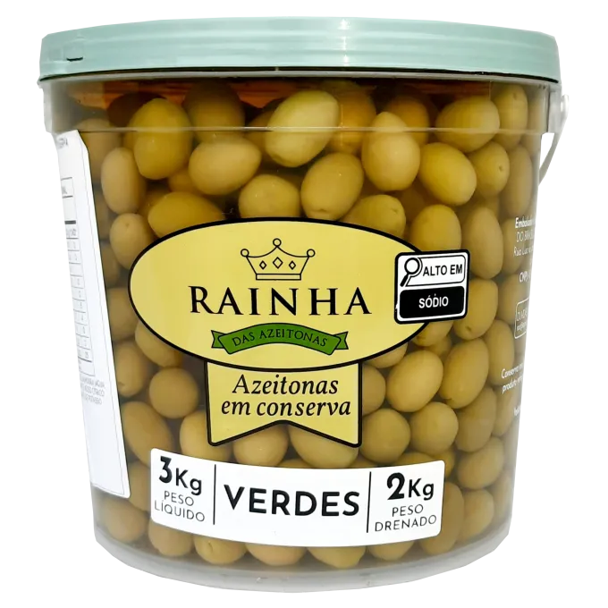 IngredientesAzeitona verde com caroço, salmoura (água e sal), acidulante ácido lático, antioxidantes: ácido cítrico e ácido ascórbico e conservador sorbato de potássio.