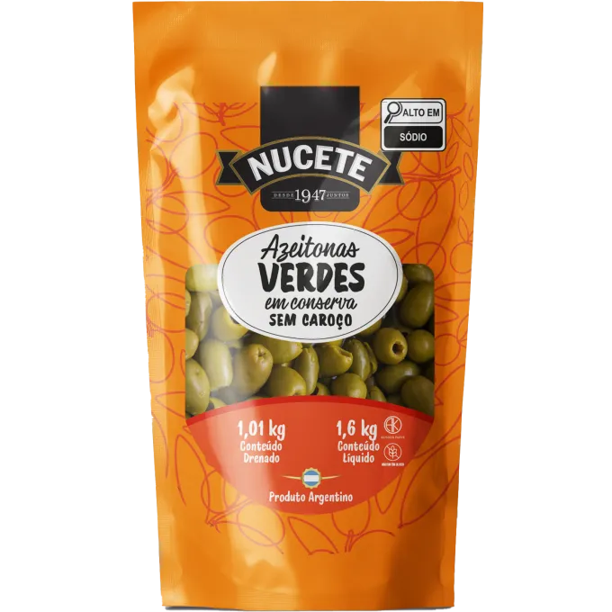 IngredientesAzeitona verde sem caroço, salmoura (água e sal), acidulante ácido lático, antioxidantes: ácido cítrico e ácido isoascórbico e conservador sorbato de potássio.