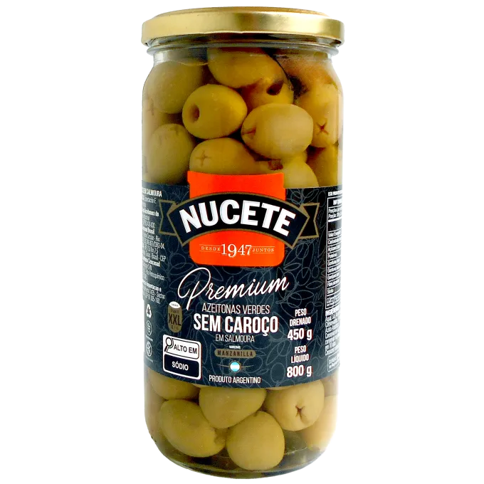 IngredientesAzeitona verde sem caroço, salmoura (água, sal), acidulante ácido lático, antioxidantes: ácido cítrico e ácido isoascóbico e conservador sorbato de potássio. AlérgicosNão contém glúten