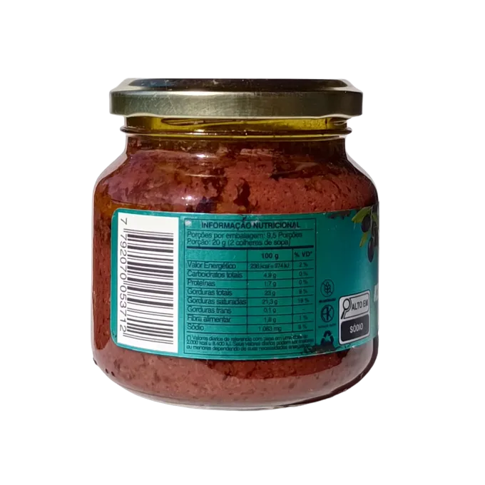 DescriçãoO Patê de Azeitonas Pretas Nucete é uma deliciosa opção para os amantes de azeitonas. Feito com azeitonas pretas de alta qualidadee embebido em azeite de oliva extra virgem, esse patê possui um sabor intenso e marcante. Sua textura cremosa e consistência suave tornam-no perfeito para ser espalhado em torradas, pães ou utilizado como um molho saboroso para sanduíches e wraps. O Patê de Azeitonas Pretas Nucete é uma combinação perfeita de sabores salgados e um toque de acidez, proporcionando uma experiência gastronômica única e irresistível. Seja como um aperitivo, um acompanhamento ou um ingrediente para suas receitas, esse patê certamente irá encantar seu paladar.Dicas de consumoAperitivo: Sirva o patê como um aperitivo antes das refeições. Espalhe-o em torradas crocantes ou pães frescos e acompanhe com queijos, embutidos e azeitonas inteiras para criar uma tábua de petiscos irresistível.